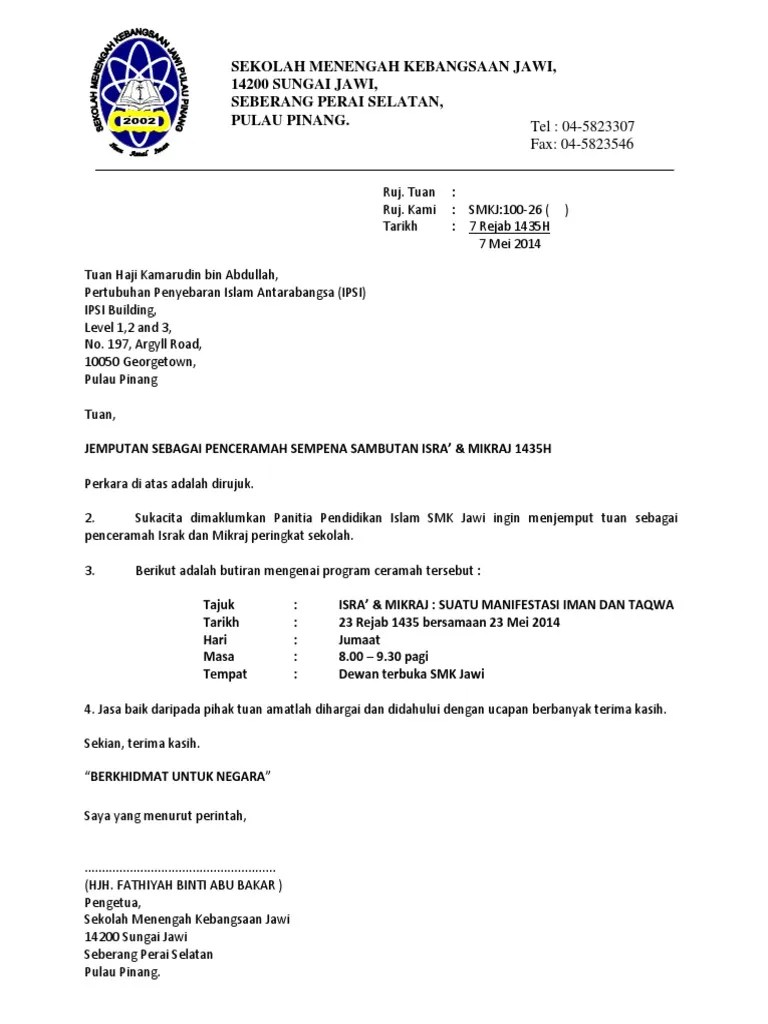 Surat jemputan ibu bapa program ceramah motivasi pdf . Contoh surat undangan ceramah tulisan. Contoh surat jemputan ceramah 2009. Contoh surat rasmi jemputan ceramah feed news indonesia. We have 6 images about contoh surat rasmi aadk including images . Contoh surat kiriman rasmi untuk menjemput penceramah download kumpulan gambar. Contoh surat jemputan penceramah doc : Berserta dengan surat ini juga . Doc surat jemputan penceramah ashadi mohd academia edu. Pengarah hospital melaka jalan mufti haji khalil 75400 melaka. Contoh surat mohon pelepasan penceramah. Pba3013@jpnpp.edu.my pengetua , sma maahad al mashoor al islami mukim g , jalan sungai nipah 11000 balik pulau pulau pinang 24 . Surat rasmi jemputan sebagai penceramah rasmi suh.